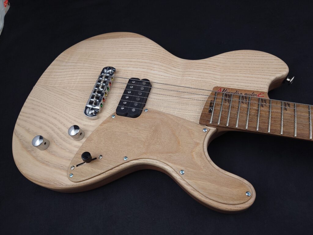La Télécaster Deluxe 72’ a toujours été une de mes guitares préférées, son corps simple, son manche de Stratocaster à grosse tête, ses micros double bobinage, son vibrato sur les plus belles versions. J’apprécie aussi particulièrement le son des musicien(ne)s qui ont choisi cet « outil »…Voilà la guitare qui, immanquablement, m’a inspiré pour créer l’HerminE.
